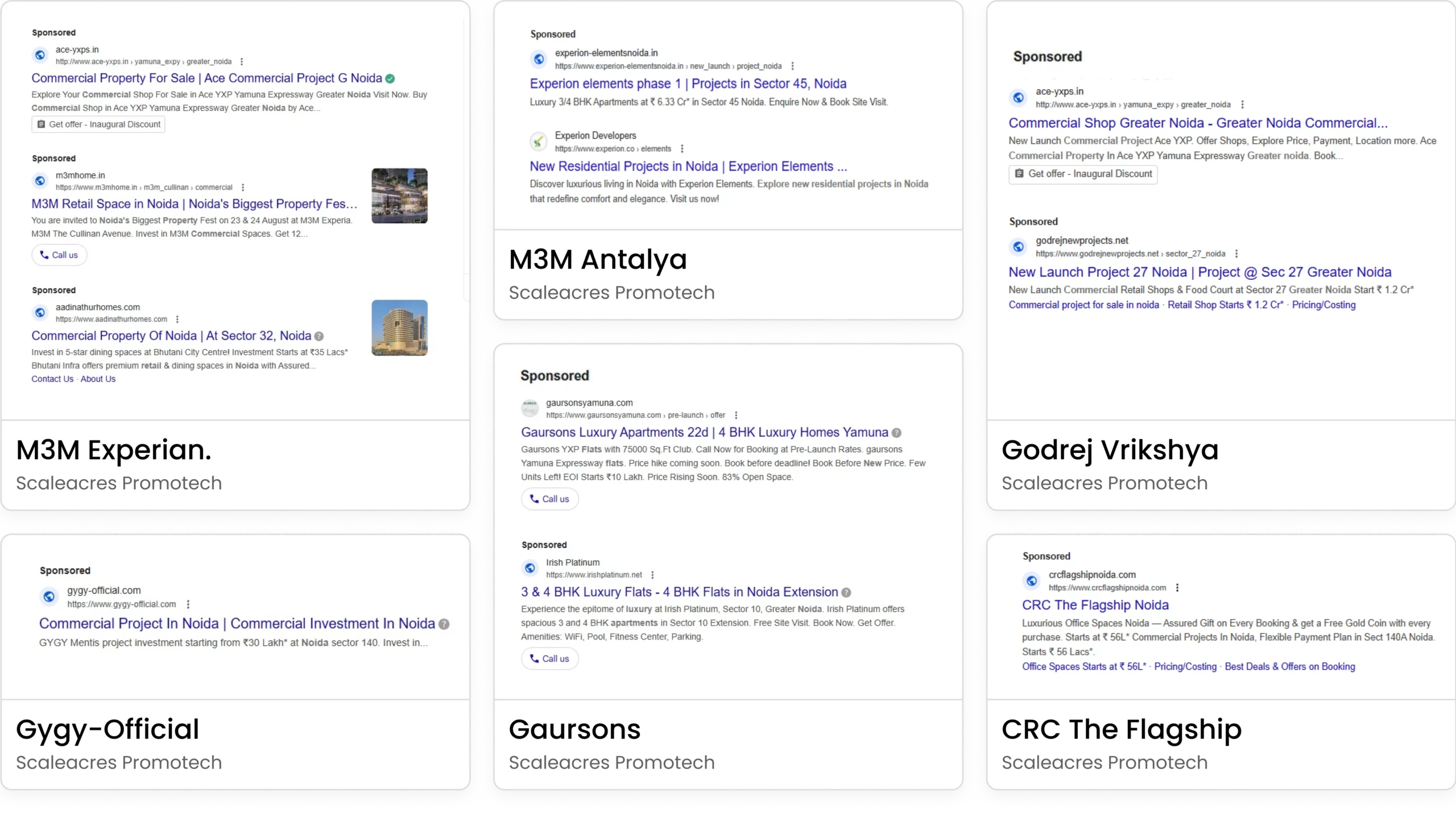 Target high-intent keywords like "Buy 3BHK in Noida". We optimize Quality Score to lower your CPC.